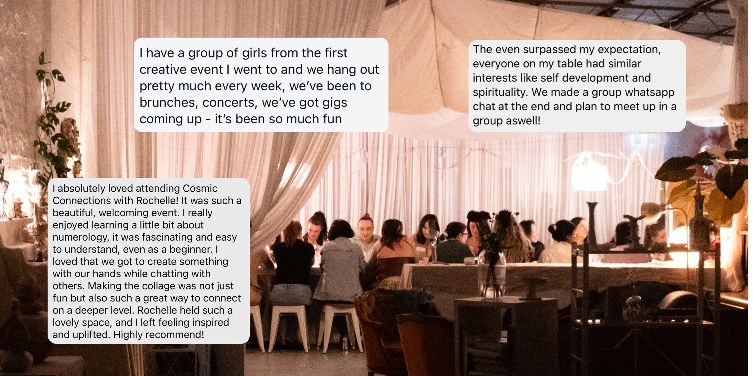 Picture this: soft lighting, good vibes, and real conversations about astrology, synchronicities and sharing our most serendipitous stories. No small talk about the weather…just genuine connection with women who speak your language.